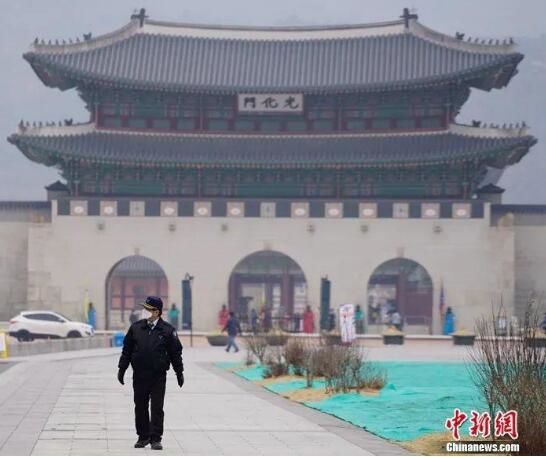 首尔光化门集会暂停,民众戴口罩走过光化门广场。中新社记者 曾鼐 摄