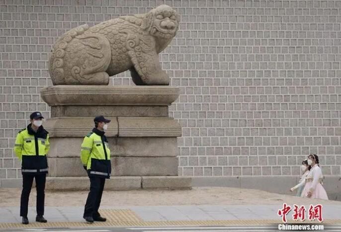 3月1日,警察在光化门附近戴口罩执勤。中新社记者 曾鼐 摄