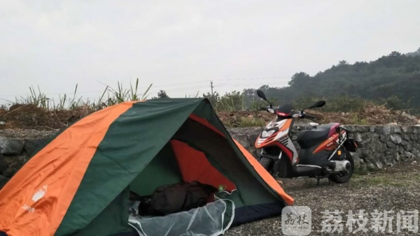 一切准备就绪后,2月22日,王昭峰启程出发。考虑到湖北疫情严重,他特地从湖南、江西等地绕行。摩托车不能上高速,他这一路走国道、省道,翻山越岭,平均每天骑行500公里左右。累了睡帐篷,饿了吃干粮,颠簸辛苦不说,有时还会遇到意外情况。一次在山路上行驶时,摩托车突然“趴窝”了。当时,前不着村后不着店,幸亏他懂一些修理常识,检查发现是火花塞故障,随即自己动手维修起来。