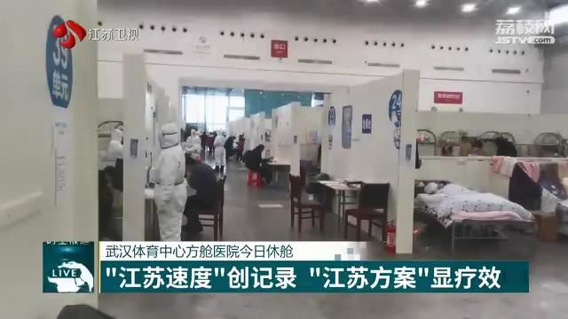 江苏医疗队只用了不到24小时就帮助武汉体育中心方舱医院建设完成并收治第一批确诊病人,仅仅两天时间,医院开始满负荷平稳运行,打出了"江苏速度"。同时,通过打造"江苏治疗方案",因人施策、精准施治。
