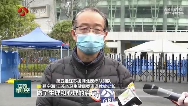 第五批江苏援湖北医疗队领队、江苏省卫生健康委离退休处处长葛宁海说:“根据患者个人情况,采取中西医结合治疗,做了生理和心理的治疗。并且结合新冠的专科治疗,以及基础病的综合治疗,一起结合起来,使得患者治愈速度有所加快,快速提高治愈率。”