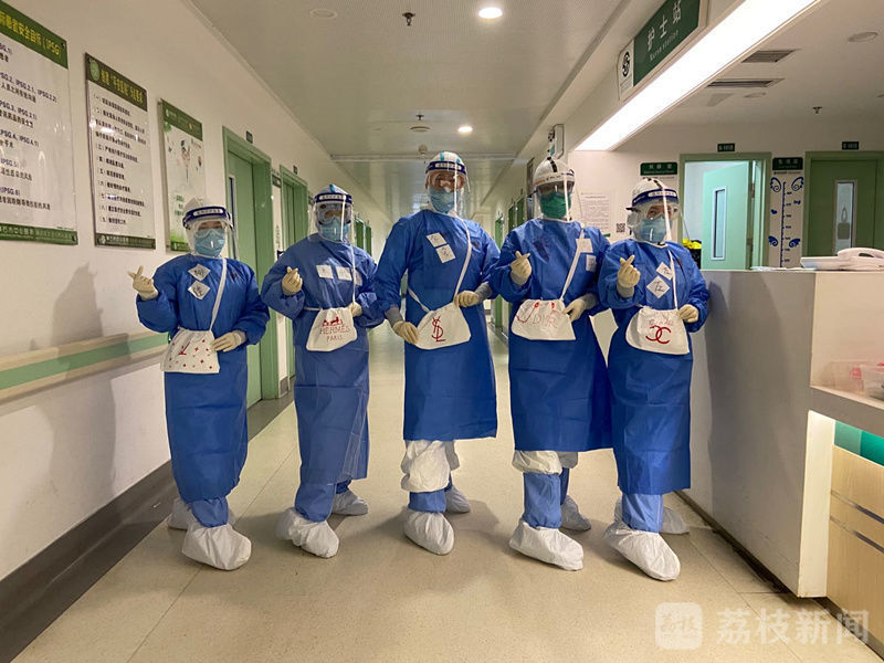 随着病人逐步康复出院,部分病房已经显得空荡荡。但病区不撤工作就不能停止,趁着一点间隙时间,“女神”们展示其乐还队员们精心绘就的“名牌包包”。虽然工作疲惫,但乐观的情绪从未远离,从病房到驻地,医护人员们用微笑和坚强战胜病魔。