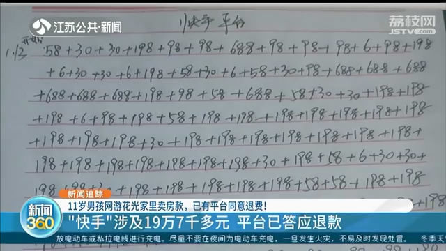 宿迁泗洪盛先生11岁的侄子和小伙伴因为打赏主播、玩手游,竟然在一个多月的时间里,几乎花光了家里40万的卖房款,由于涉及未成年人,并且金额巨大,新闻报道后,这一事件引发了社会各界的广泛关注。3月8日,记者得到事件的新消息,一家网络平台在核实相关信息后已经同意退款。