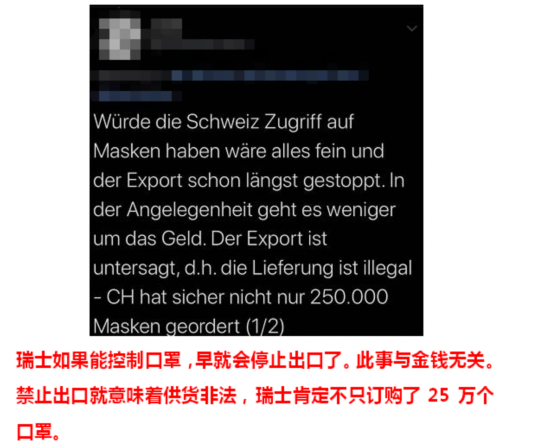 瑞士本国几乎不生产医疗物资,在疫情之下口罩供应本就捉襟见肘,如今又被德国扣留一部分,更是雪上加霜。