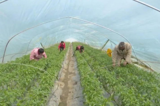 在板湖镇湖光春色园区,一排排连栋大棚分立田间,大棚内郁郁葱葱的辣椒苗长势喜人,当前农户他们正抢抓春耕黄金时期,有序进行辣椒管护工作,确保疫情防控期间农业生产不断档,早日上市销售。作为上海市“市外农产品主供基地”之一,该园区尽量减少疫情对农业生产的影响,种植户充分发挥基地优势,采取错峰销售等形式全力接轨上海,获得更多的经济效益。