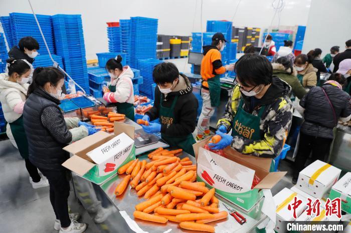 某生鲜电商平台与餐饮企业的“共享员工”与平台正式员工一起合作分拣食品。 殷立勤 摄