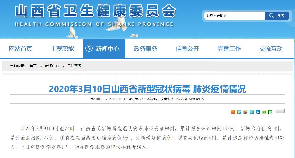 山西卫健委官网截图