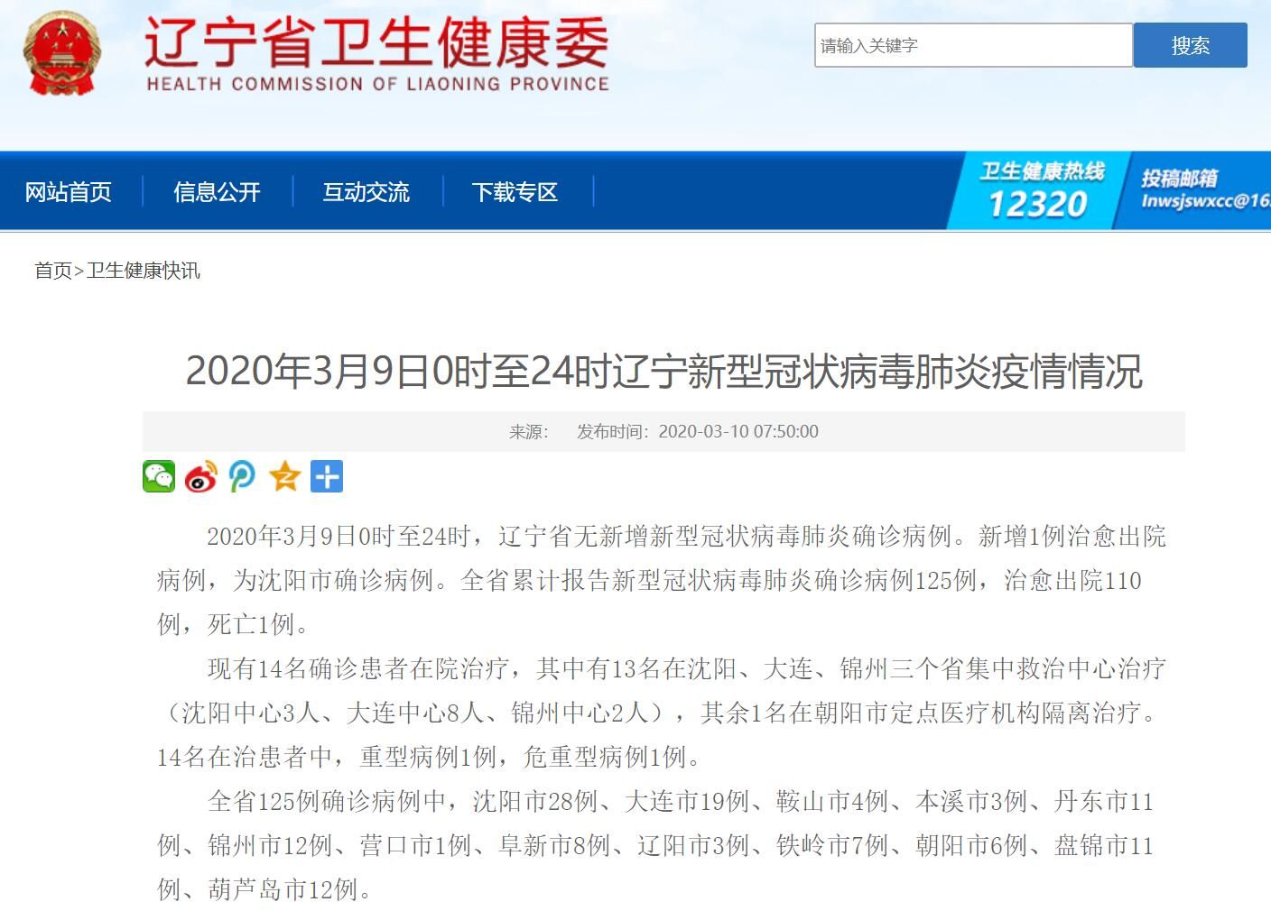 辽宁卫健委官网截图