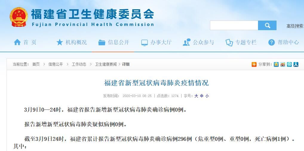 荔枝新闻讯 据福建卫健委官网消息,3月9日0—24时,福建省报告新增新型冠状病毒肺炎确诊病例0例。