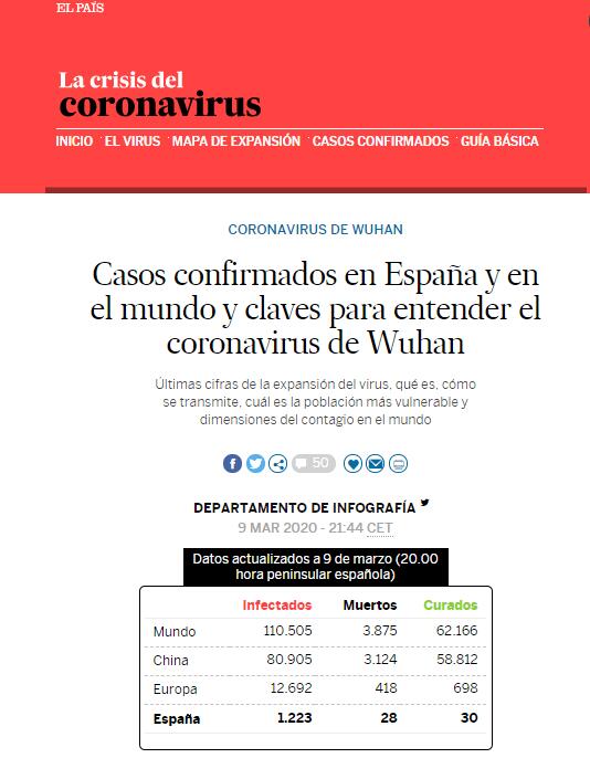 根据西班牙卫生部及各大自治区发布数据,西班牙新冠肺炎确诊病例累计达1223例。其中,马德里577例、巴伦西亚自治区44例、拉里奥哈自治区102例、巴斯克地区149例、加泰罗尼亚自治区101例、安达卢西亚自治区60例、卡斯蒂利亚-拉曼查自治区26例、卡斯蒂利亚-莱昂自治区33例、坎塔布里亚自治区12例、加那利群岛22例、阿拉贡自治区32例、埃斯特雷马杜拉自治区7例、巴利阿里群岛11例、阿斯图里亚斯自治区10例、纳瓦拉自治区13例、加利西亚自治区19例、穆尔西亚自治区5例。