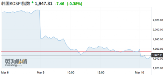 韩国KOSPI指数开盘下跌0.63%,报1954.77点,随后跌幅有所收窄,维持在0.4%左右,主要受到韩国有关部门采取强制措施的提振。