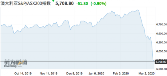 10日开盘后,澳大利亚ASX200指数快速下跌218.10点,跌幅一度达到3.9%,最低报5538.9点。目前市场都在关注,10日收盘该指数将大概率较纪录水平下跌至少20%,即跌入熊市。在过去13个交易日里,随着疫情对经济影响的担忧日益升温,澳大利亚股市从2月20日的顶点快速跌落。