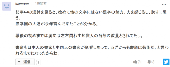 不少日本网友也纷纷予以积极评论:“看到报道中的汉诗,再次感受到汉字的魅力和力量,感到很自豪”、“共同加油”!等。