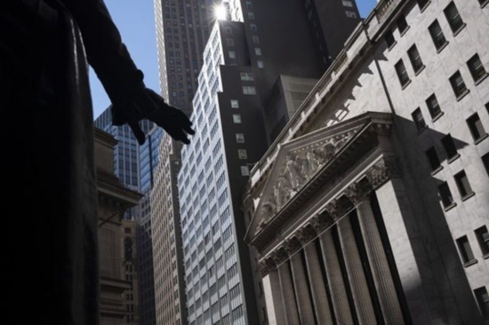 这是3月9日拍摄的美国纽约证券交易所大楼(右)。(新华社记者李木子摄)