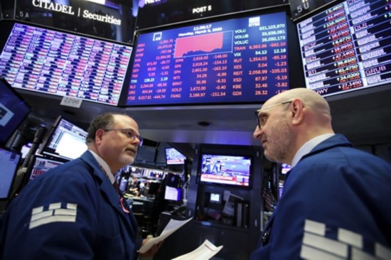 3月9日,交易员在美国纽约证券交易所工作。(新华社记者王迎摄)
