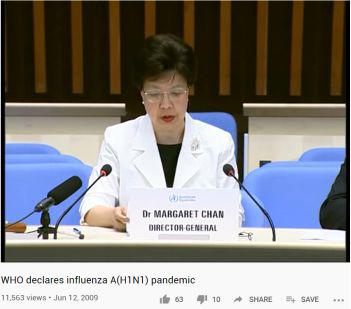 2009年6月11日,时任世卫组织总干事陈冯富珍宣布,根据现有证据以及专家们对证据的评估,甲型H1N1病毒的传播情况已经达到为流感大流行设定的科学标准。