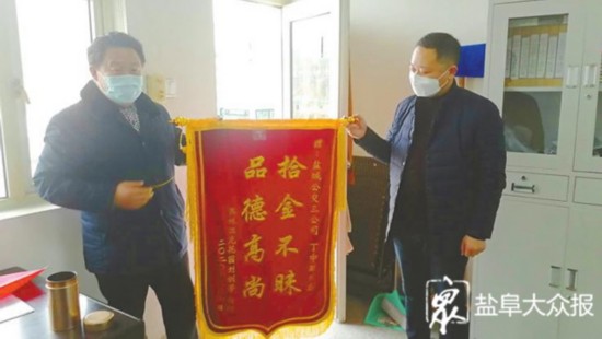 “谢谢热心的丁中明师傅,细心负责、拾金不昧,正能量的事情值得表扬。”3月6日下午,市民李恩德将一面“拾金不昧、品德高尚”的锦旗送到了市公交总公司三分公司,以示感谢。