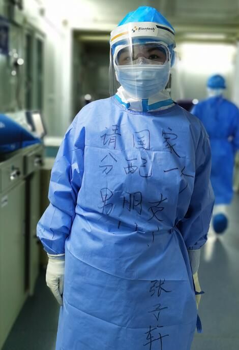 “在哪里?”“在家”“立刻回来!注意安全!”这是主动请缨支援武汉前,张子轩和医院护士长的对话。在武汉,张子轩护理的大多是有基础疾病的老人,他们的病情逐渐转好,出院的人也越来越多。有一天工作间隙,为舒缓工作压力,活跃气氛,她和队友在衣服上写下了“请国家分配一个男朋友”的话语。