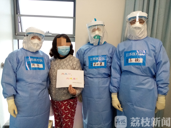 20天煎熬,一颗悬着的心终于可以放下来了,她高兴地拉着我们的手一定要合影留念:“感谢江苏医疗队对我的精心治疗和鼓励,让我能够顺利康复出院,等疫情过了,你们一定要再来武汉做客!”看到她开心的笑容,我们也替她高兴,这也是我们来武汉36天后,治愈出院的第36个重症患者!