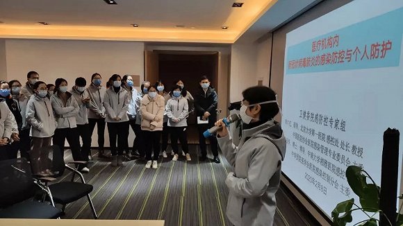 虽然各位医护人员都已经身经百战,但对于新冠肺炎这一陌生面孔,他们仍要做到知己知彼。了解新冠肺炎的疾病特征、传播途径、有效防护等则是他们的首要任务。感控组对医疗队员作了全员培训,使大家对疫情防控有了更为具体直观的认识。