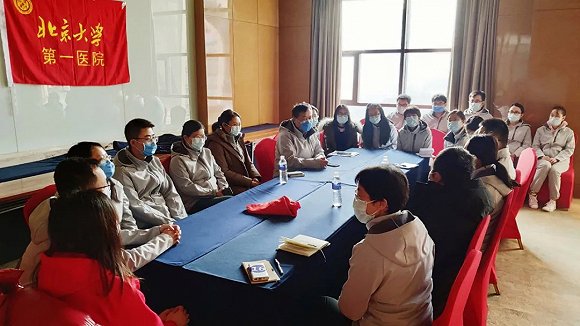 北大医院派出医疗队后,队员在短时间内经过沟通、分工、磨合、协作,迅速形成了新的工作组,打开了工作局面。在整建制地接管了病区后,医疗队在不到36小时的时间内完成了准备工作,随即形成了一套工作制度:刘新民院长等8位专家组成医疗队核心组,人员分为医疗、护理、感控、联勤保障4个工作组;根据7*24小时的工作安排,各工作组进一步将人员分组、排轮值班。
