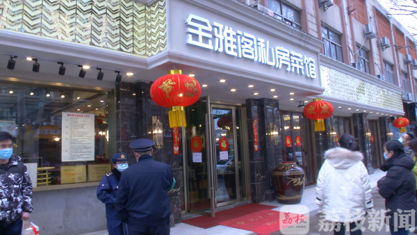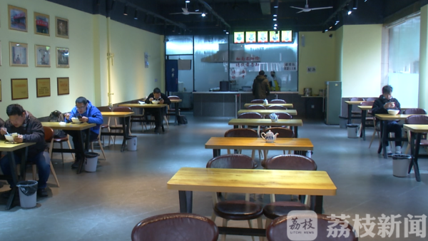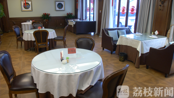 今天(3月10日)上午9点半,记者跟随执法人员来到了南京红花村附近的一家精菜馆。这家饭馆营业面积大概200多平方米,为了恢复堂食,饭馆将座位间距拉开,把座位从原来的120个变为了40个。