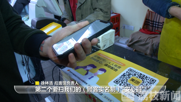 接着,食客还要提供"宁归来"绿色行程码,以及用手机扫顾客实名制的"安心码",这样方便追溯到每一个用餐人的名字、地址和电话。此外,为了避免交叉感染,这家店目前是不收取现金,而是通过扫码进行支付。