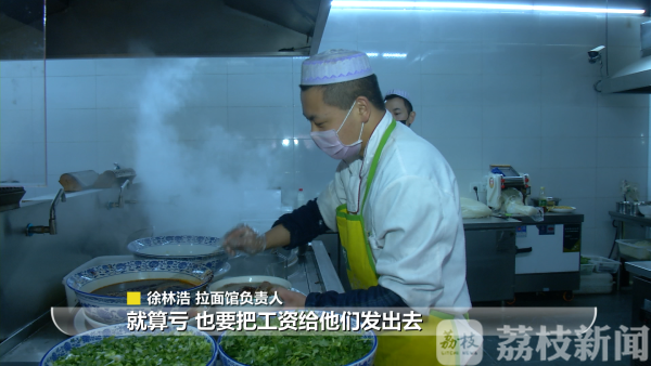 拉面馆负责人徐林浩介绍说:“现在堂食,我们不推荐等待时间长的菜,比如像大盘鸡;我们只推荐一些速食,比如拉面或者烩面片,吃完就走,避免顾客在店里停留过长的时间。随着恢复堂食之后,我们希望,能够把人员的工资维持住就可以,就算亏,也要把工资给他们发出去。我们一定要有信心,把这场疫情给抗过去!”