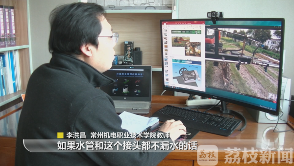 春耕中拖拉机出现故障怎么办?常州市金坛区农民陈云拿出手机,向常州机电职业技术学院的李洪昌老师求助。通过视频连线,李老师分析了故障可能产生的原因:“如果水管和接头都不漏水的话,初步考虑应该是喷雾系统压力不够造成的。水看看够不够,再一个是箱里那个过滤器看看是不是堵了。如果这两处没问题,检查一下发动机的转速,看是不是达到了它规定的转速。你先检查一下,有什么问题我们随时再联系。”