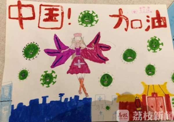 “这幅画是我送给妈妈的‘三八妇女节’礼物,我的妈妈是一名护士,希望她能化身成我画里的美少女战士,挥动她手中的魔法棒,把病毒早日消灭,中国加油,武汉加油,妈妈加油!”