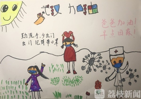 “希望爸爸早点把病毒打败,我和妈妈在家等你呦,武汉加油。”