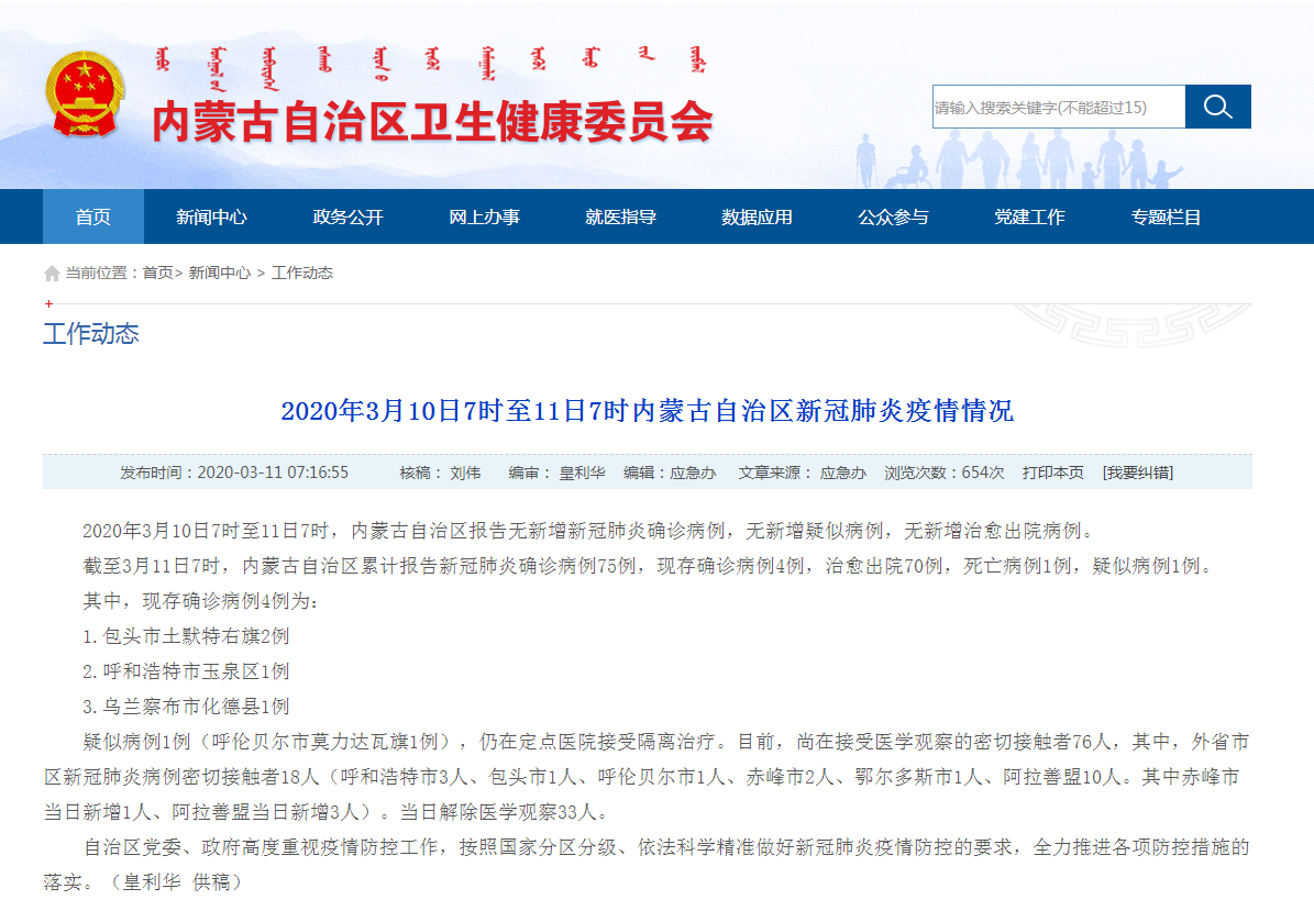 内蒙古卫健委官网截图
