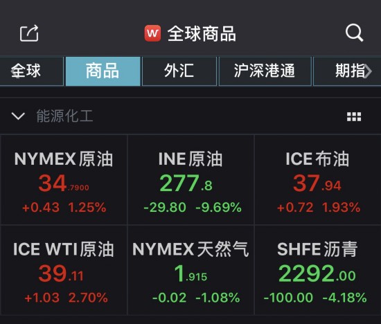 国际原油期货涨幅也有所收窄,截至发稿,NYMEX原油涨1.25%,报34.79美元/桶;ICE布油涨1.93%,报37.94美元/桶。