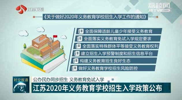 根据党中央、国务院相关意见精神,省教育厅制定《关于做好2020年义务教育学校招生入学工作的通知》,包括六个方面18条具体举措。尤其强调义务教育免试就近入学的规定要求,提出:加强招生计划审核,明确由各市、县(市、区)教育行政部门审核、编制和下达年度招生计划,学校须严格按照计划招生;明确学校招生范围,公办学校根据划定的学区招生,民办学校在审批机关的辖地内招生,原则上不得跨设区市招生;全面实行公民同招,公办民办学校同步登记报名、同步招生录取、同步注册学籍。招生时间一般安排在5月中旬至8月中旬;严格执行免试入学要求。