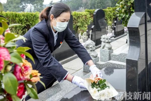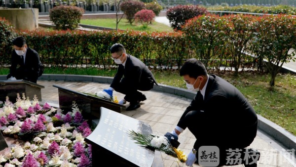 随后记者来到离青龙山不远的青城公墓。十位工作人员正手捧花束来到一个墓区,逐一给每块墓碑三鞠躬并敬献鲜花。“今天祭扫的片区,我们将通过短信群发给家属,让他们知晓并放心。”公墓主任李言介绍,这里规模小一点,约1.9万套墓穴。