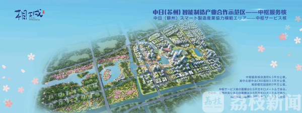 值得一提的是,中枢服务核以相城智“芯”、共创智“谷”为发展目标,建设科创谷、江南梦、樱花园三大片区。以高水平产城融合为导向,城市产业发展轴、城市综合服务轴“双十字轴”交相辉映,打造产业聚集、活力共生的新城。区域绿地面积达37.4%,水面面积达10.7%,整体蓝绿比近50%。北部弦樱湖面积4.3公顷,寓意传统苏州评弹与日本樱花;中部朱鹮湖面积5公顷,寓意合作腾飞;南部樱花园面积216公顷,将是苏州独一无二的樱花主题公园。