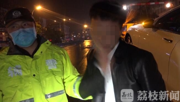 从酒驾事故现场被查,再到涟水交警队接受酒精检测,9日晚,驾驶员孙某嘴里不停喊着对不起妈妈的同时,还一阵猛扇自己嘴巴。