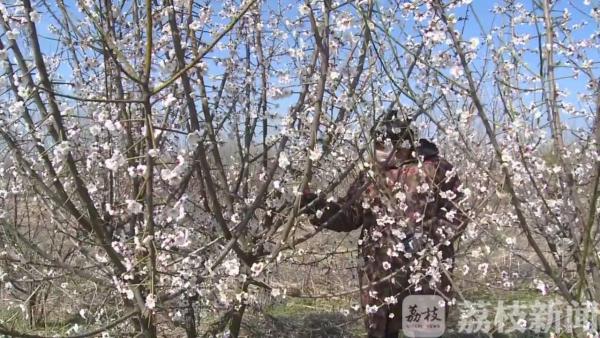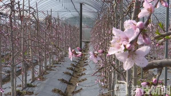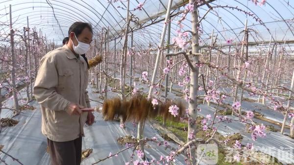 在南通市通州区十总镇双墩村的采卉蜜桃采摘园里,一股花香扑面而,一树树桃花竞相绽放,传递着春的气息。记者走进采摘园的温室大棚,工人正用鸡毛掸子给桃花授粉。负责人马学美告诉记者,3月份,采摘园的桃树进入了重要管护期,工人复工后,通过错峰入园、分散劳作的方式,进行滴管取水、人工授粉等生产,让桃树尽快疏果,尽点上市。
