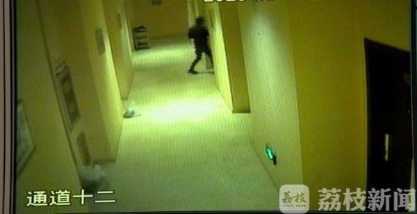 监控中可以看到,当天晚上10点,常熟这家作为隔离点的酒店楼道内空无一人,然而,3楼边缘的一扇小门被撬开后,一名男子悄悄进入楼道内,连口罩都没戴。