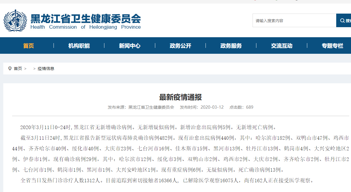 黑龙江省卫健委官网截图。