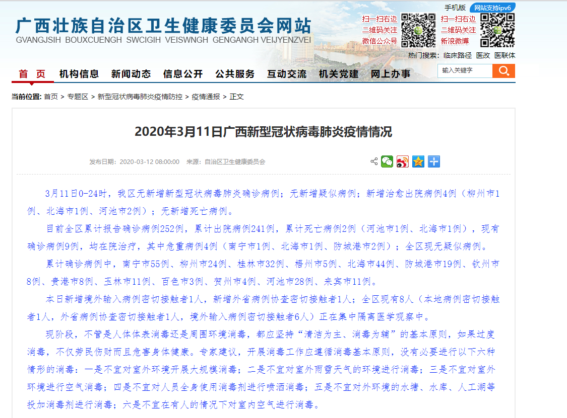 广西壮族自治区卫健委官网截图。