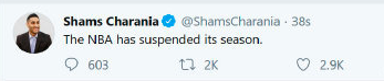 此前,据Shams的报道,爵士球员戈贝尔已经被确诊为新冠肺炎。