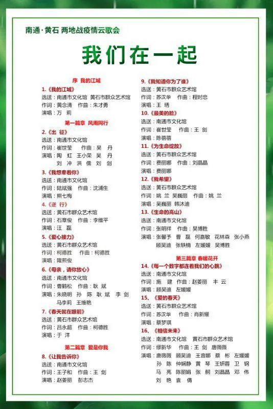 倾听南通、黄石两地文艺工作者为打赢这场防控战谱写的“战歌”今晚7:30云上黄石APP,不见不散!