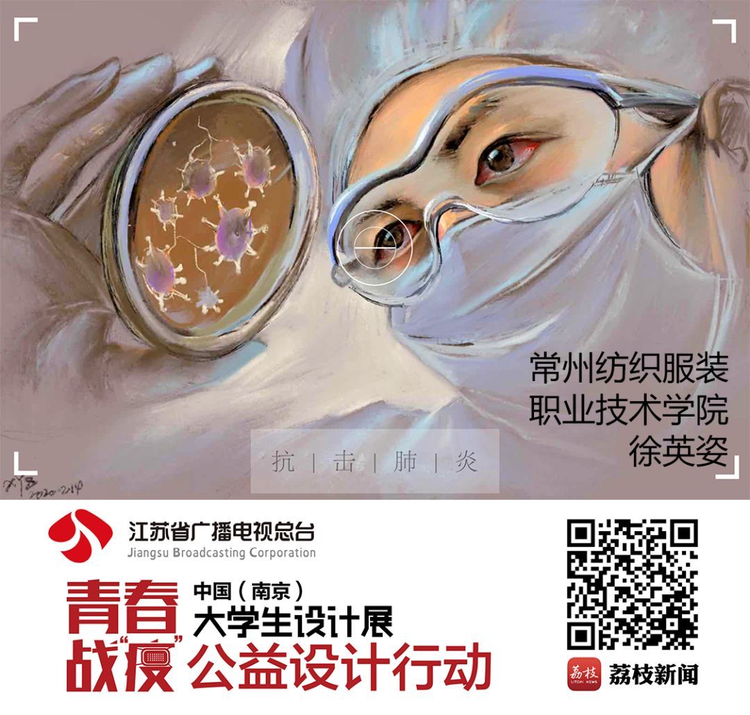 用“色粉笔”描绘一线医生护士夜以继日地研究病毒、治疗患者的情形。他们的眼睛里布满了血丝,虽然充满了疲惫,但也透露出坚持到底的信心、决心。
