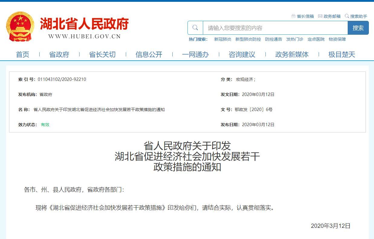 荔枝新闻讯 据湖北省人民政府官网消息,湖北省政府发布了《关于印发湖北省促进经济社会加快发展若干政策措施的通知》,全文如下: