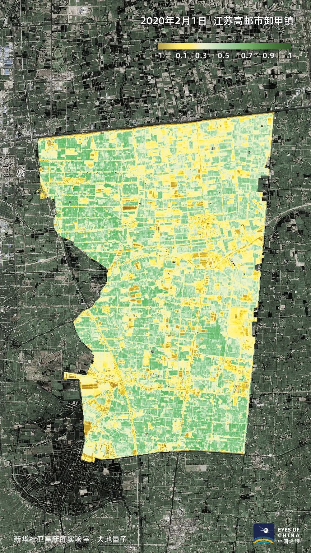 冬小麦是中国最重要的粮食品种,种植区域北抵长城、南至江淮。在江苏高邮,冬小麦的长势也有显著变化。2月上旬,受疫情影响,高邮市有462户外地种粮大户未能及时返回,涉及超过10万亩农田。当地政府通过托管帮办预案,逐户对接、主动服务、一户一策,还给予10元/亩补助并帮助对接农资产品运输。