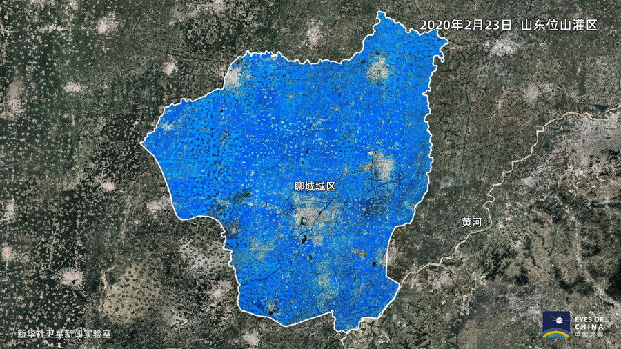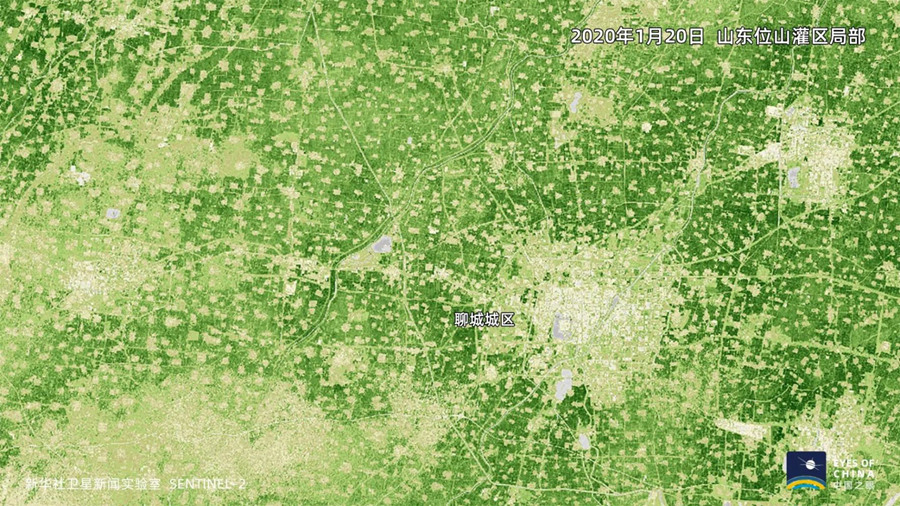 俯瞰位山灌区这样遍布农田的平原地区,叶绿素水平的变化,直接反映冬小麦长势。