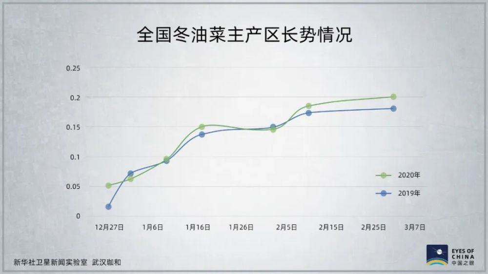 卫星遥感监测全国油菜主产区显示,2月份冬油菜长势明显好于去年同期。