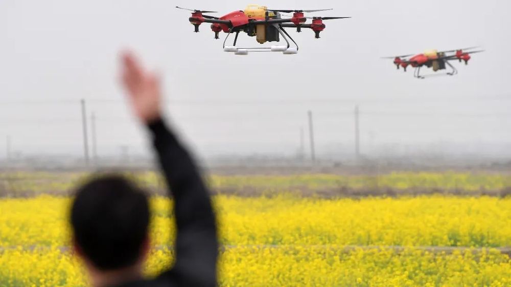 南昌市南昌县蒋巷镇,无人机在进行油菜植保作业。油菜是中国种植面积最大的油料作物,冬油菜种植面积占全国油菜总面积的90%以上。(新华社记者 彭昭之摄)