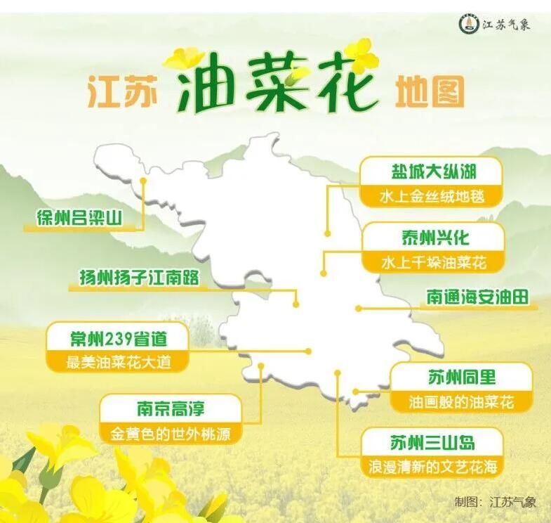 【兴化】今年油菜花的中晚熟品种,初花期在3月20日左右,盛花期在3月25日左右,终花期在4月10日左右。